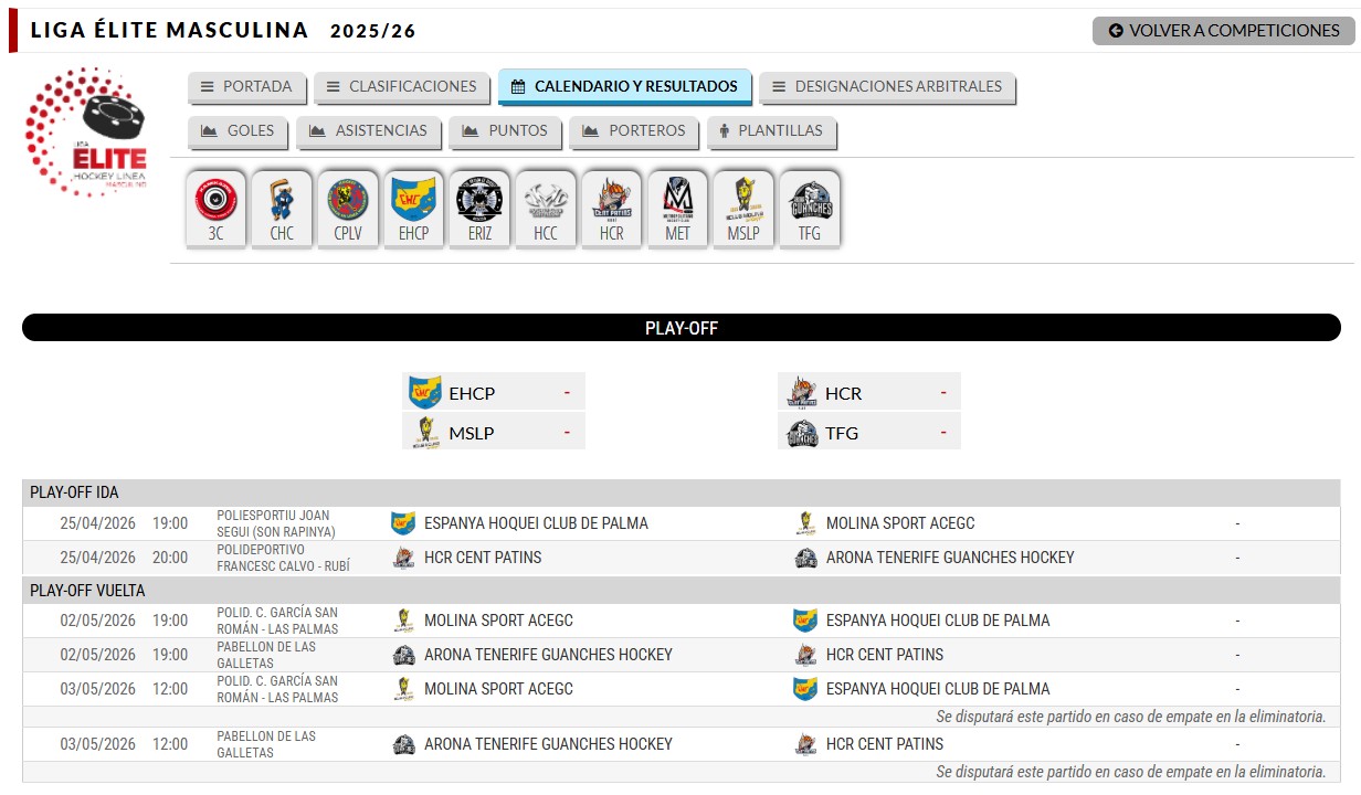 2 | ARONA TENERIFE GUANCHES HOCKEY | 39 | 1 | 17 | 12 | 2 | 3 | 126 | 74 | 52 | ||